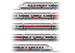 Voorbeeld: Elektrisch hogesnelheid treinstel EC 250 als RABe 501 'Giruno' van de Zwitserse Staatsspoorwegen (SBB). Eén stuurstandrijtuig A (Bt1), 2e klas. Eén tussenrijtuig F (B7), 2e klas, met instap geschikt voor minder valide reizigers en met pantograaf. Eén tussenrijtuig G (WR6), met restauratie afdeling. Één tussenrijtuig H (A5), 1e klas met instap geschikt voor minder valide reizigers en met pantograaf. Eén stuurstandrijtuig L (At2), 1e klas. Meer-systeem treinstel. Model van de EC 151, grensoverschrijdend treinstel voor het traject Frankfurt/Main - Freiburg - Basel - Zürich - Milano Centrale. Treinnummer RABe 501 022 met het wapen van het kanton Vaud. Model in de uitvoering omstreeks 2024.