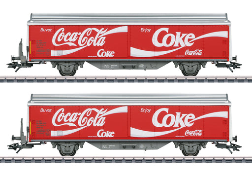 Productomschrijving: Märklin 48344 - Set Goederenwagons - "Coca-Cola" - SBB / CFF / FFS Voorbeeld: Twee schuifwandwagens met gladde zijwand...